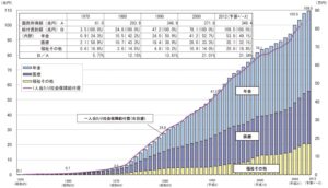 (上図の出典)国立社会保障・人口問題研究所「平成22年度社会保障費用統計」、2011年度~2012年度(予算ベース)は厚生労働省推計、2012年度の国民所得額は「平成24年度の経済見通しと経済財政運営の基本的態度(平成24年1月24日閣議決定)」