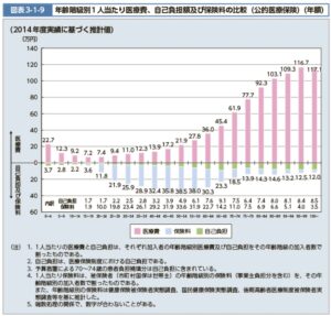 私は医者ですので社会保障費の中の医療費(特に老人医療費)の問題についても少し触れさせていただきたいと思います。現在の医療費の窓口事故負担割合は69歳までは3割負担、74歳までは原則2割負担75歳以上は原則1割負担(70歳以上は収入にり1割~3割の差異があるが後期高齢者全体の8割は1割負担相当となっており、2割負担相当の後期高齢者においてもかなり低額に上限が設定されている)です。また高額療養制度も充実していて例えば2割負担の後期高齢者は外来18,000円/月・外来と入院合計57,600円/月が上限となっており、頑張って健康体を維持して自宅で生活を送る高齢者より入院してしまった方が生活コストがかからないという誠に不条理な状況になってしまっています。